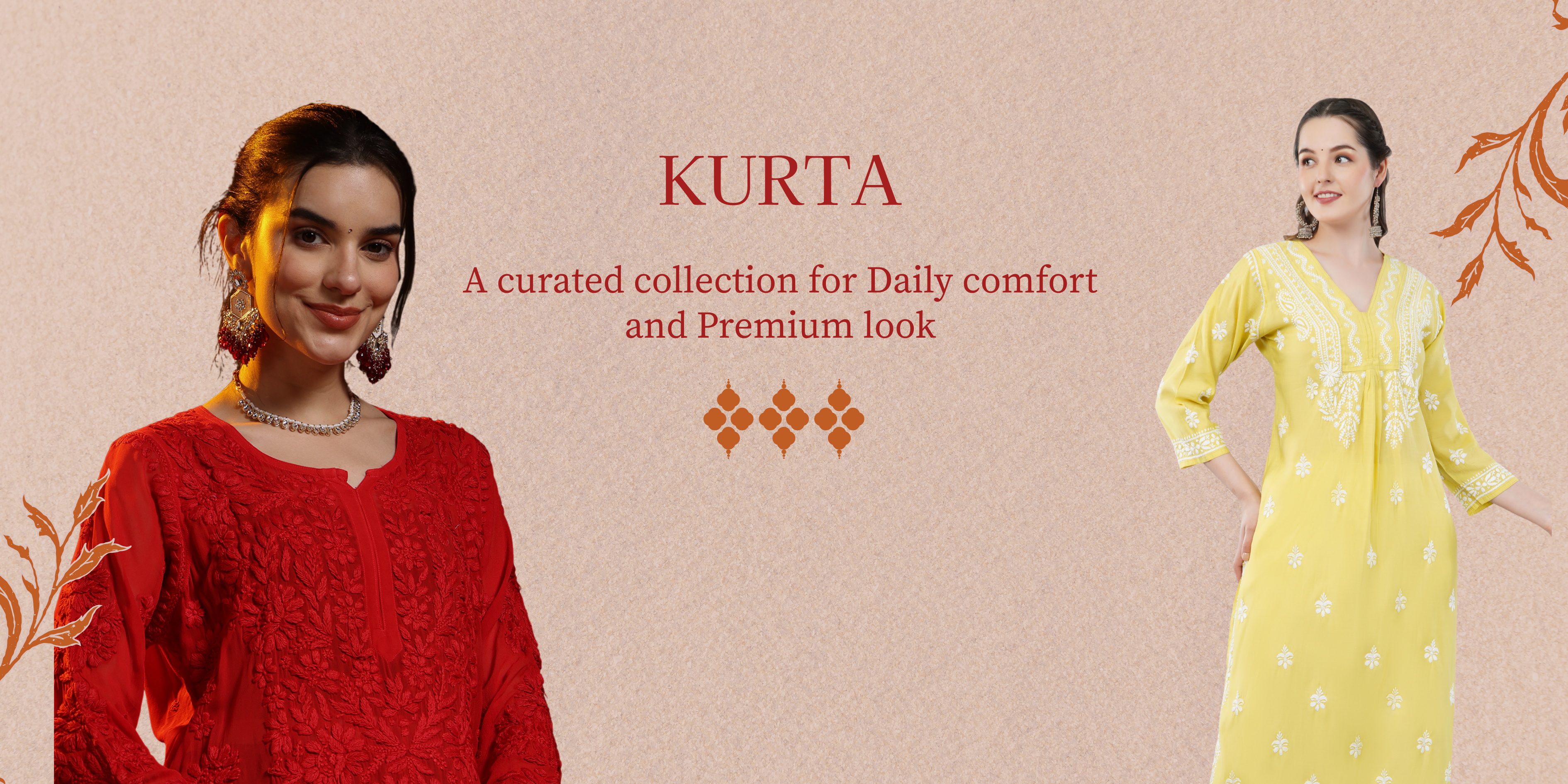 Discover exquisite Chikankari Kurtis featuring authentic Lucknowi hand embroidery. Shop elegant Rayon,...